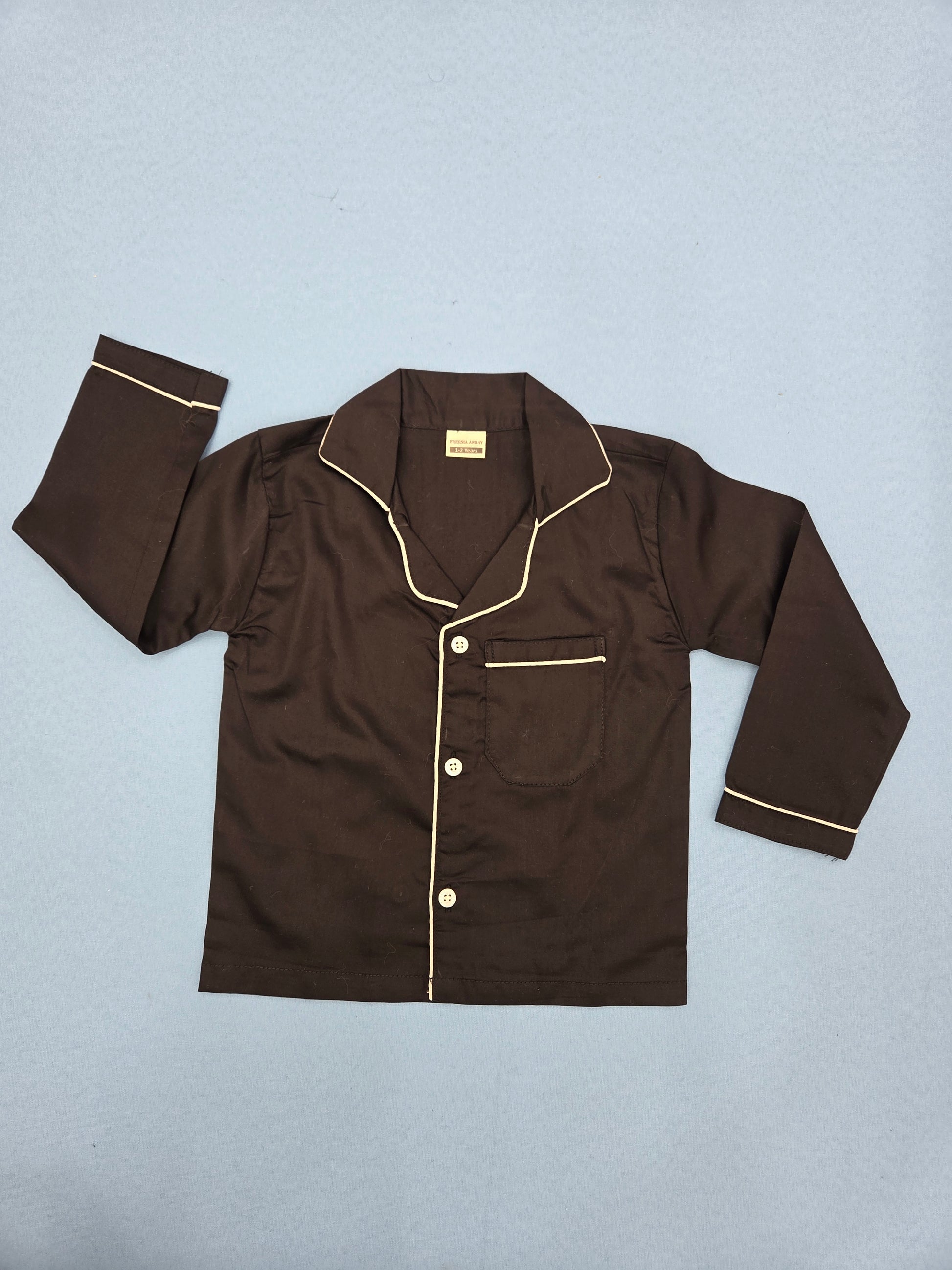 Upgrade your lounging routine with the perfect blend of classic tailoring and breathable luxury. Crafted from 100% pure cotton, this deep black pyjama set features striking white contrast piping for a sharp, sophisticated finish.